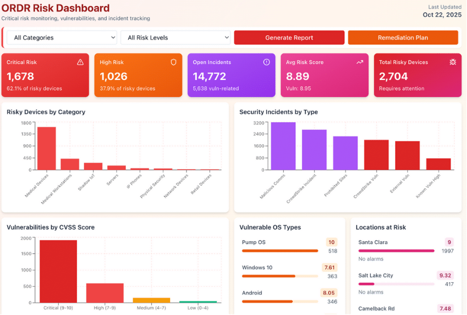 ORDR establishes a real-time asset baseline across every location—storefronts, distribution centers, guest networks, corporate HQ, cloud services, and property operations—so teams understand exactly what is connected, how it behaves, and which exposures matter most. With ORDR, organizations can: